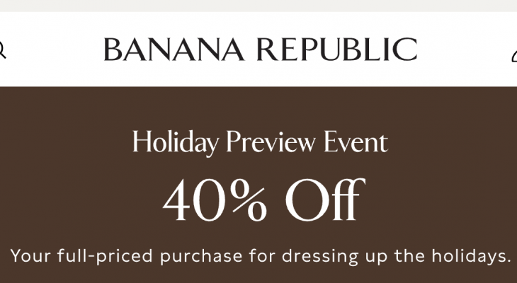 Banana Republic Canada has an awesome sale available now. Save 40% off all regular-priced items. This offer is valid until November 11, 2025, and the discount will be applied at checkout.