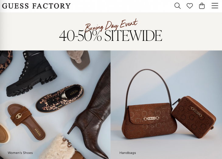 GUESS & GUESS Factory Canada Boxing Day 2025 Sale: Save up to 50% + FREE Shipping