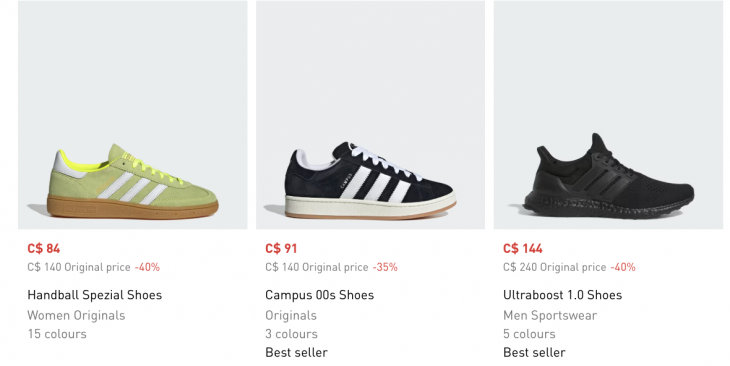 Adidas Canada has an awesome sale available now. Save up to 50% off on outlet styles for men, women, and kids. Prices are as marked.