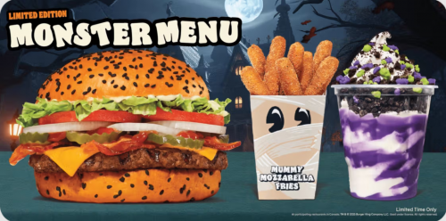 The limited edition Monster Menu is also available, and this includes the Franken-Candy Sundae, Mummy Mozzarella Fries, and the Jack-O-Lantern Whopper.