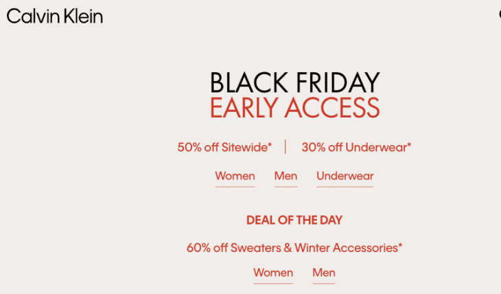 Calvin Klein Canada has awesome Early Black Friday Deals available now. Save 50% off sitewide.