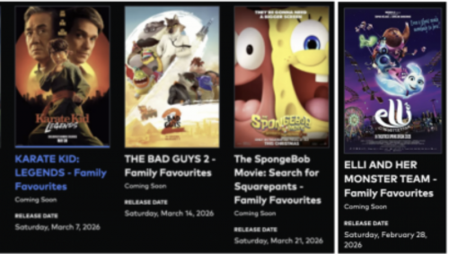 - Saturday, March 14, 2026: THE BAD GUYS