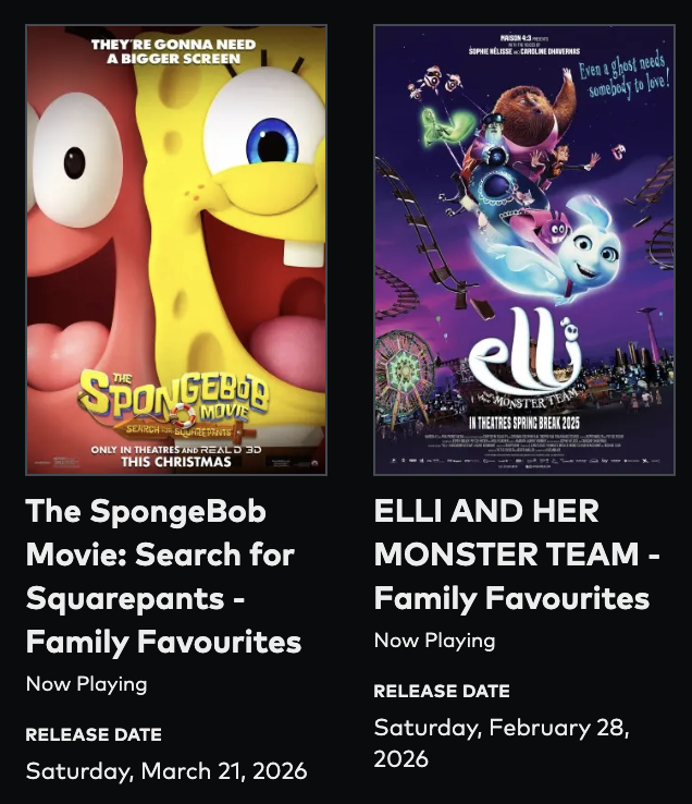 Here’s a list of the upcoming weekly movie line-up at Cineplex Family Favourites for only $3.99: