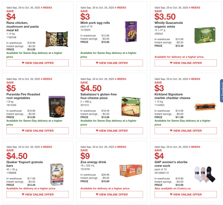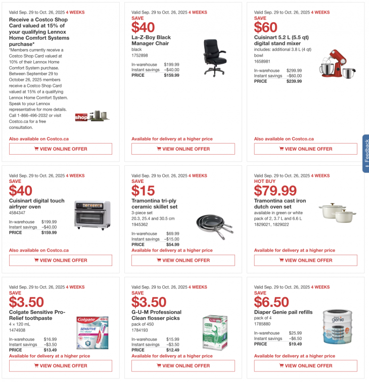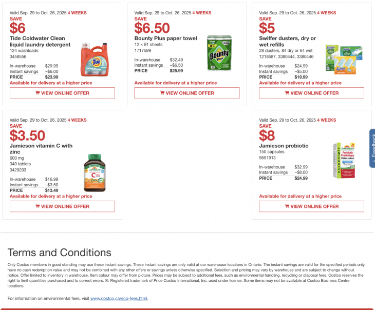 These Canada instant flyers are valid until September 28, 2025. Only Costco members in good standing may use these instant savings handouts and Costco discount will be automatically added when you purchase any of these items.