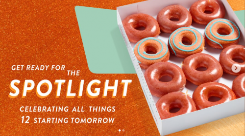 Today only, October 3rd, get a Spotlight Dozen at Krispy Kreme Canada for just $12. The Spotlight Dozen is the same Original Glazed with a bold new orange glow, and this offer is available at participating locations today only.