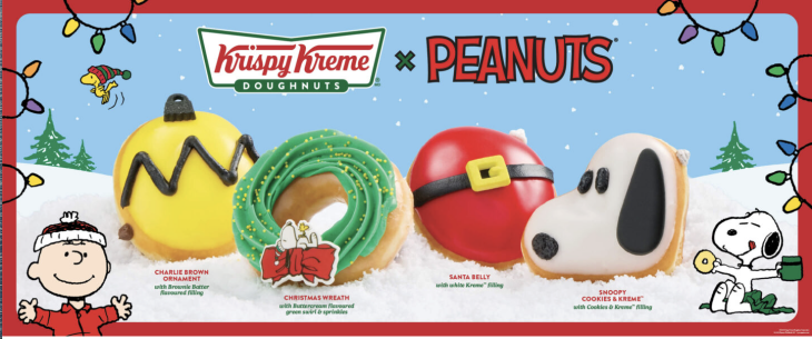 Kripsy Kreme x Peanuts doughnuts are available now at Krispy Kreme Canada, and will be available throughout the month of December. This festive collection features four different doughnuts, and includes the following: