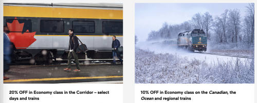 - 10% off in Economy class on the Canadian, the Ocean, and regional trains