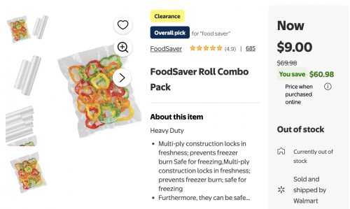 Walmart Canada has an awesome Clearance Sale available now. Save 87% Off FoodSaver Roll Combo Pack 6 Rolls NOW For 9.00 Only (Save $60.98).